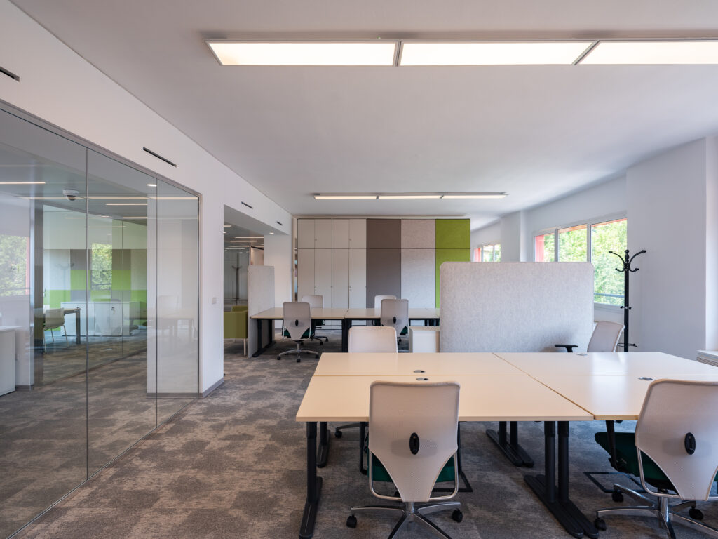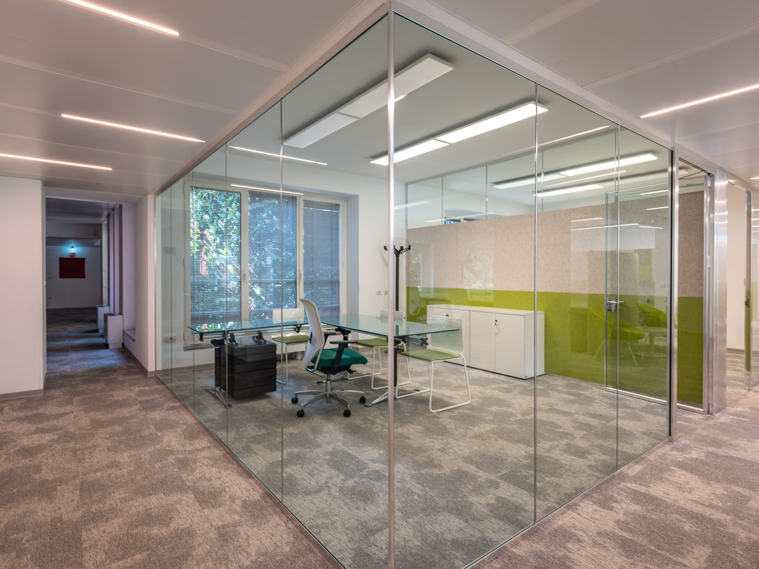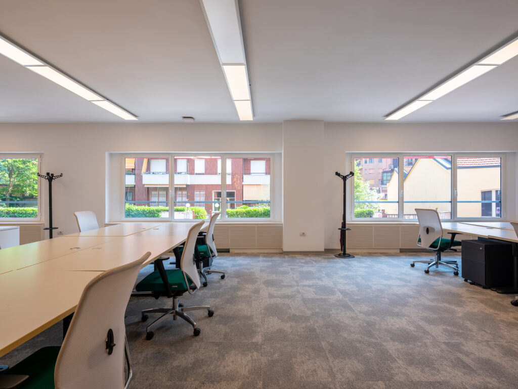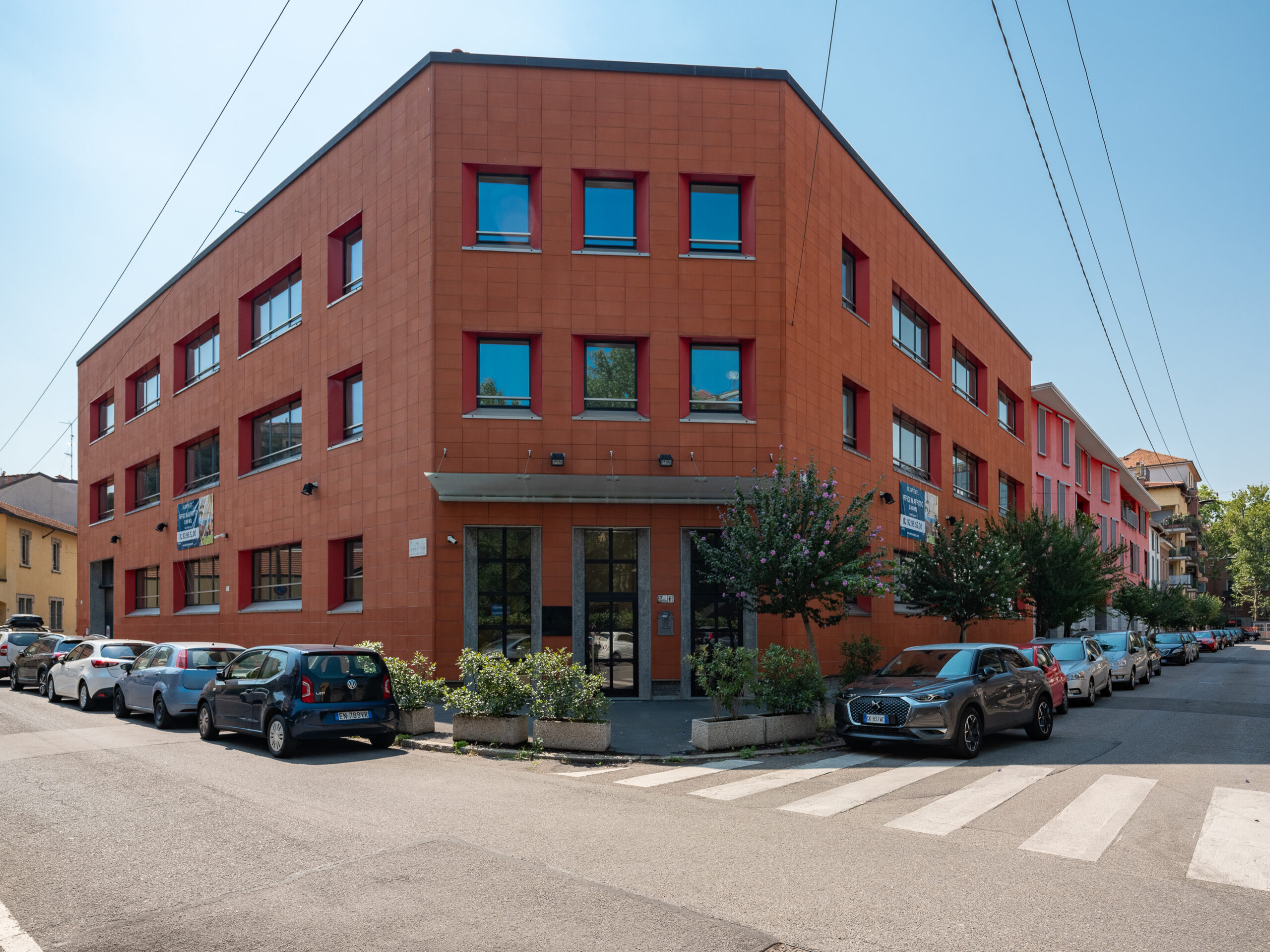 L’edificio direzionale indipendente per un totale di 3.207 mq, situato nell’area nord ovest di Milano tra viale Certosa e viale Espinasse, si sviluppa su quattro piani fuori terra, oltre al seminterrato dove sono ubicati i posti auto.