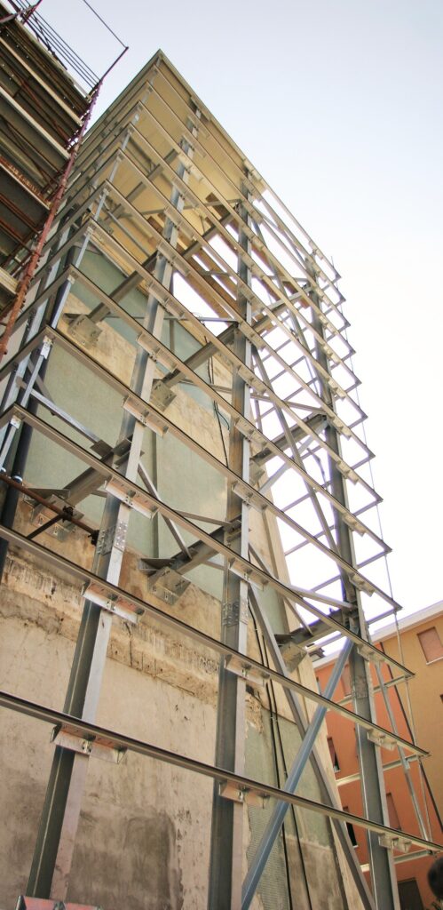 Interessante esperienza progettuale guidata dall’arch. Giancarlo Marzorati che ripensa interamente l’edificio: lo svuota e lo riduce alla sola struttura portante, per poi dare una nuova forma al volume, contrariamente al parallelepipedo originario, grazie all’utilizzo di strutture in acciaio e di superfici vetrate che permettono la versatilità progettuale.