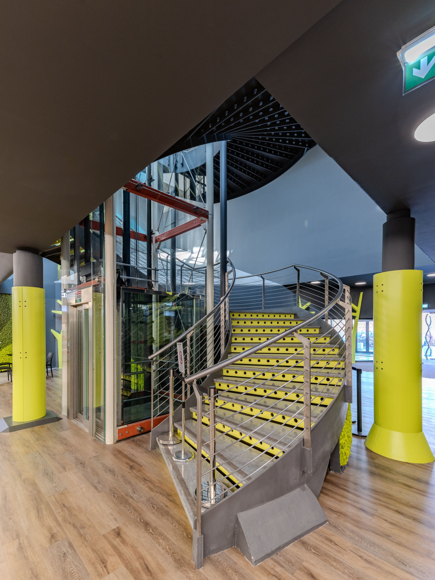 Caratteristica di questo complesso è la trasparenza e largo impiego della luce usata per creare effetti speciali in linea con la destinazione cinematografica del complesso.