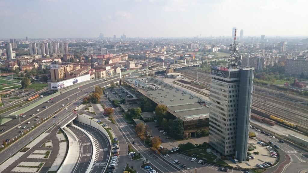 L’uso del colore è in effetti una peculiarità di Alinvest nella zona, come si può apprezzare anche nei successivi interventi quali l’hotel Voco e l’adiacente Colour Building.