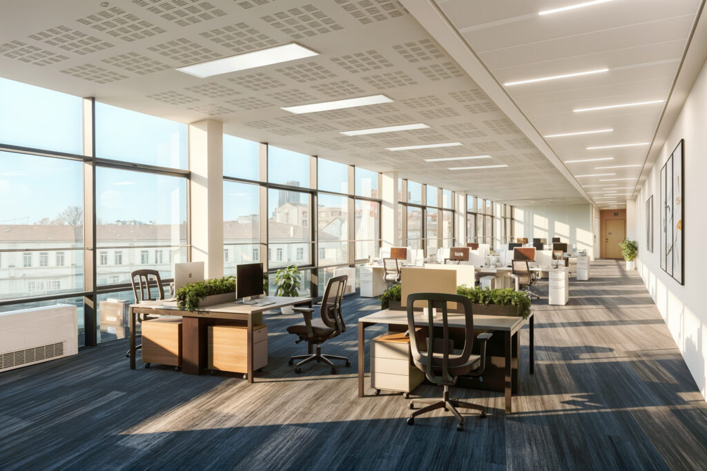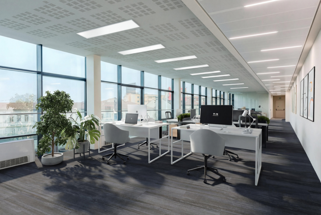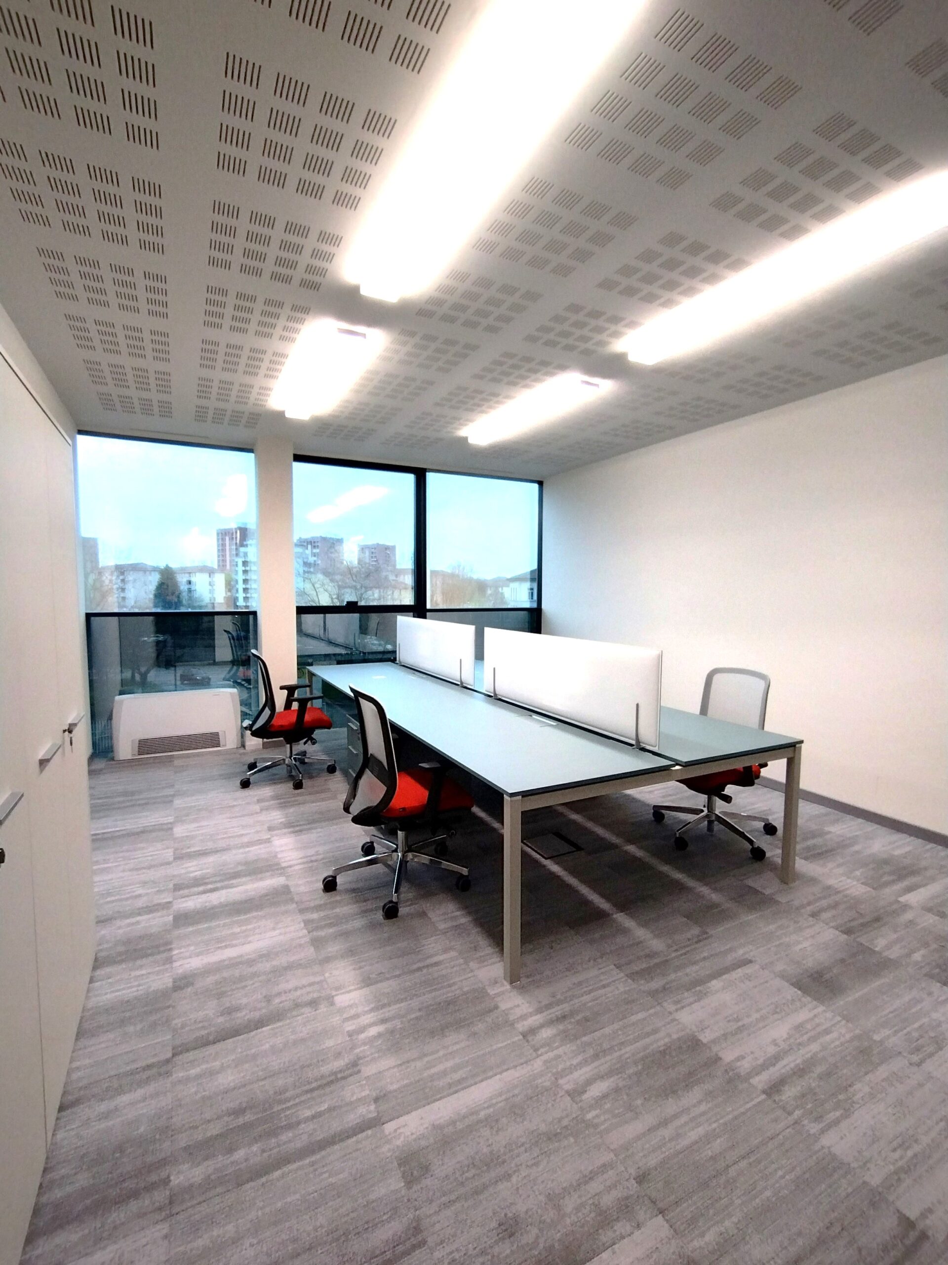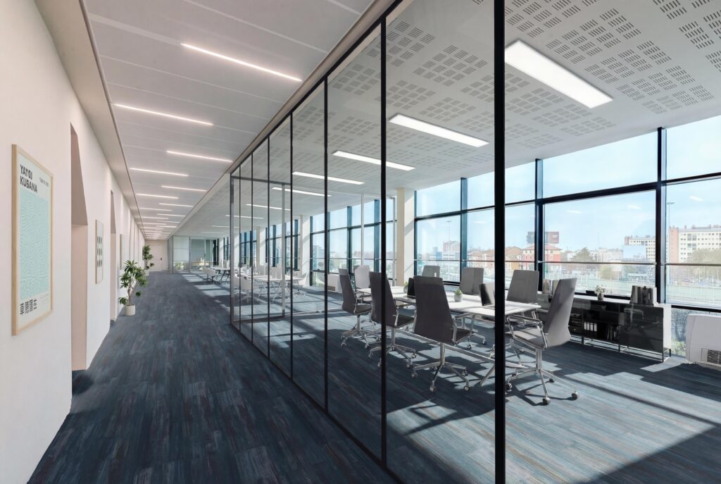L’immobile è dotato di impianto di riscaldamento invernale ed raffrescamento estivo a fan coil, quadro elettrico di piano, pavimento sopraelevato, due gruppi bagni e controsoffitto metallico nel corridoio con illuminazione led ad incasso.