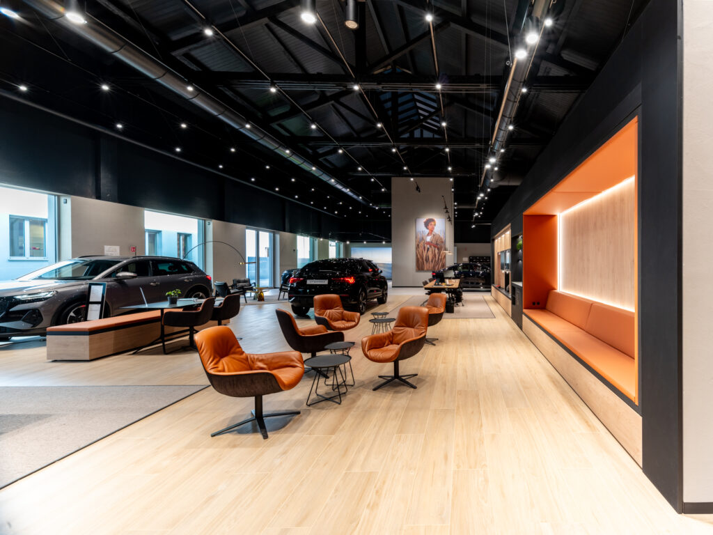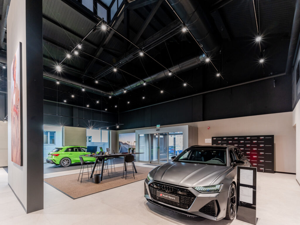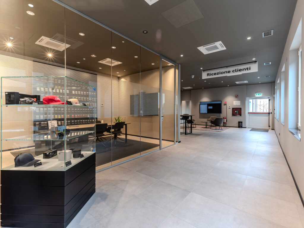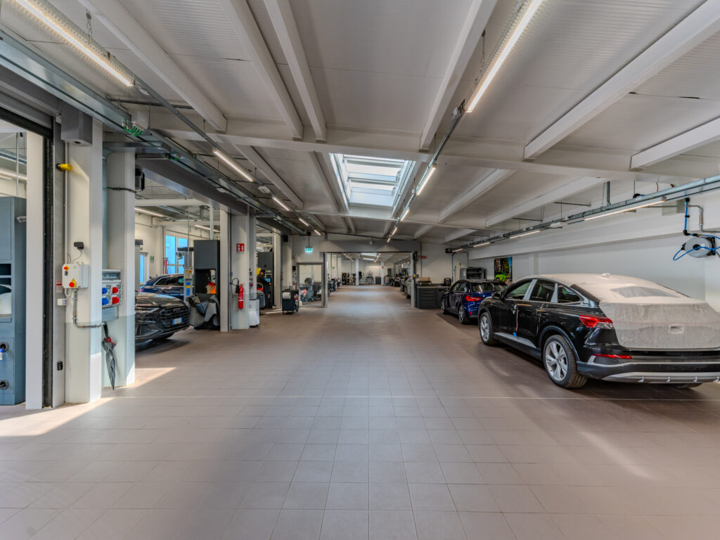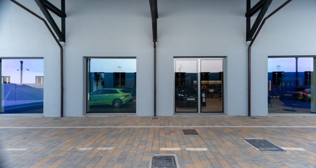 Le caratteristiche strutturali dell’immobile nonché le altezze interne creano uno spazio ideale per concessionarie di auto o moto, outlet, uffici ed attività con showroom. L’immobile è caratterizzato da tre corpi di fabbrica con peculiarità architettoniche diverse. I tre corpi di fabbrica circondano un’ampia corte interna con parcheggi.