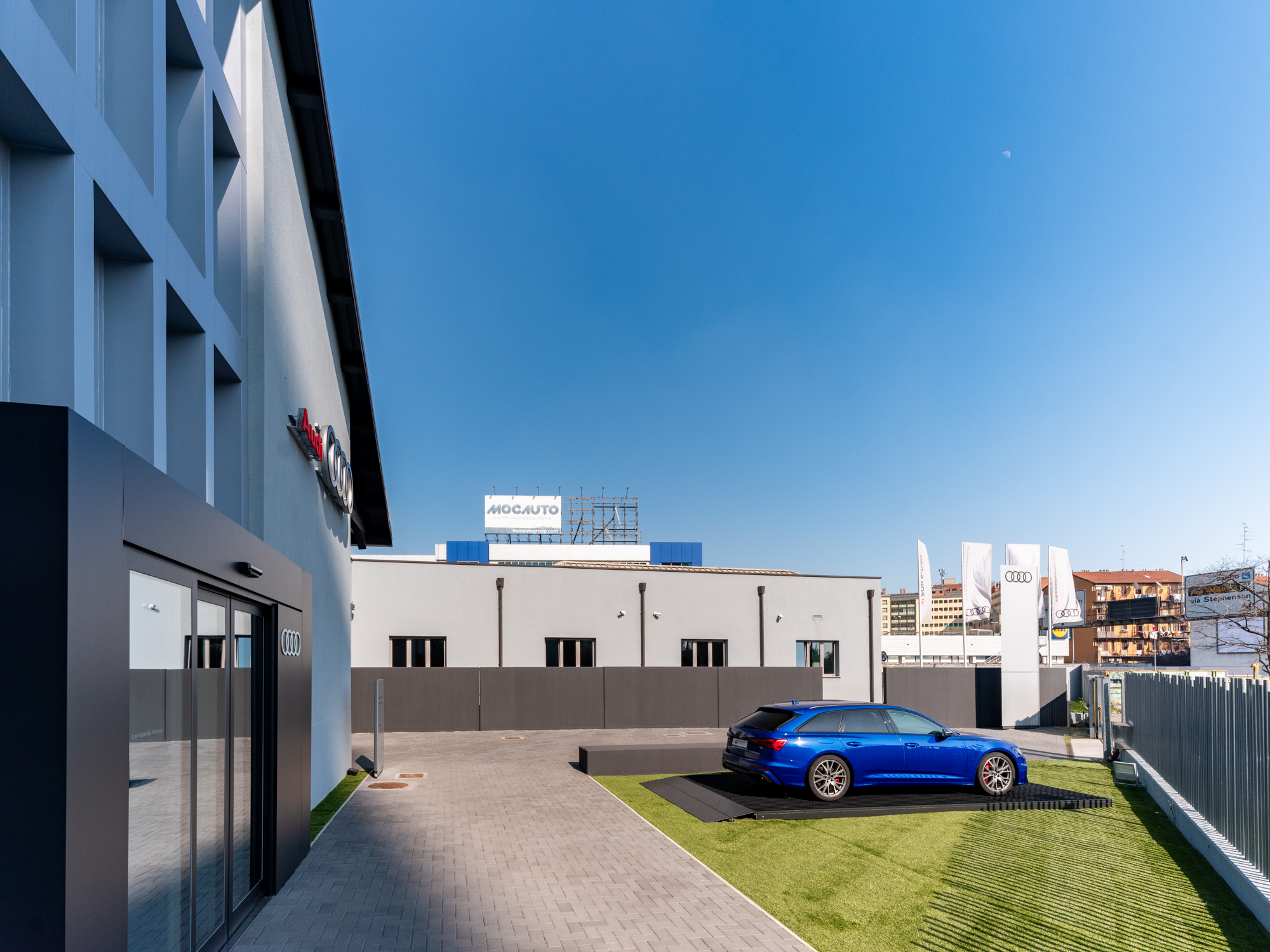 Il Complesso polifunzionale denominato “Terranova” di 3.000 mq. circa, sito in via Sumatra 12, ed oggi felicemente locato a Lombarda Motori, concessionario Audi, gode di grande visibilità essendo ubicato nella zona Stephenson a ridosso del nodo autostradale verso viale Certosa.