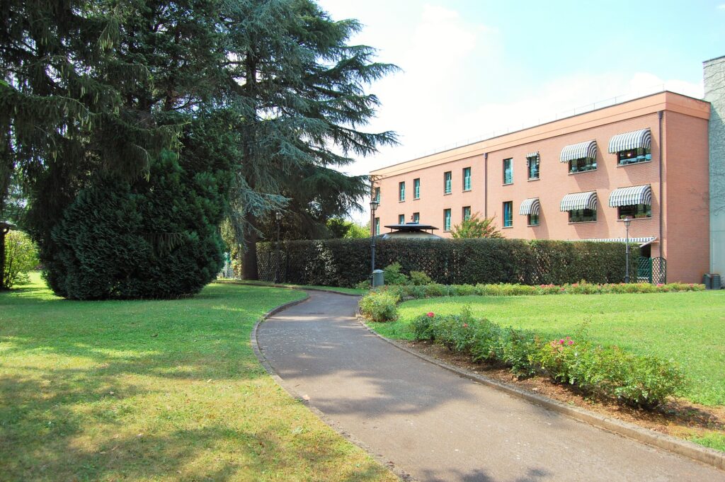Esternamente a questo, ma ad esso collegato si è provveduto alla costruzione di un interno nuovo corpo destinato ad ospiti affetti dalla patologia Alzheimer o da altre patologie psichiatriche. Per la patologia Alzheimer si è creato in prossimità all’edificio un giardino dedicato con percorsi ed essenze espressamente rivolte all’assistenza di tali ospiti. Per quanto riguarda gli spazi aperti, il progetto ha previsto la riqualificazione del parco e la realizzazione di un portico a chiusura del chiostro centrale quadrato, creando un percorso coperto in grado di dare continuità all’intera struttura.