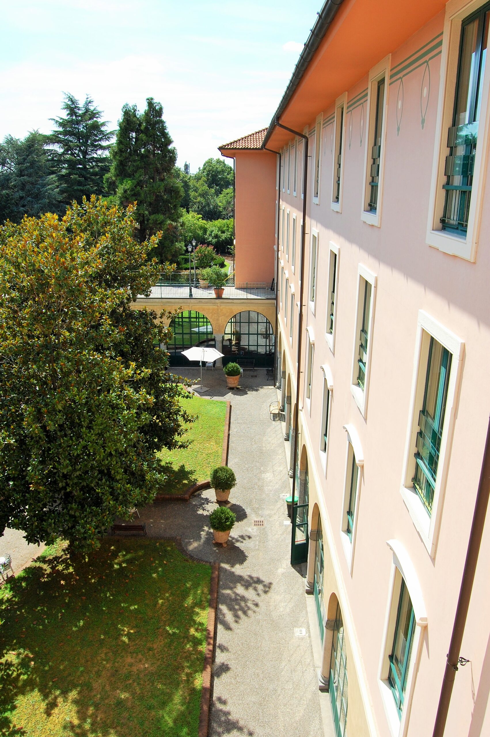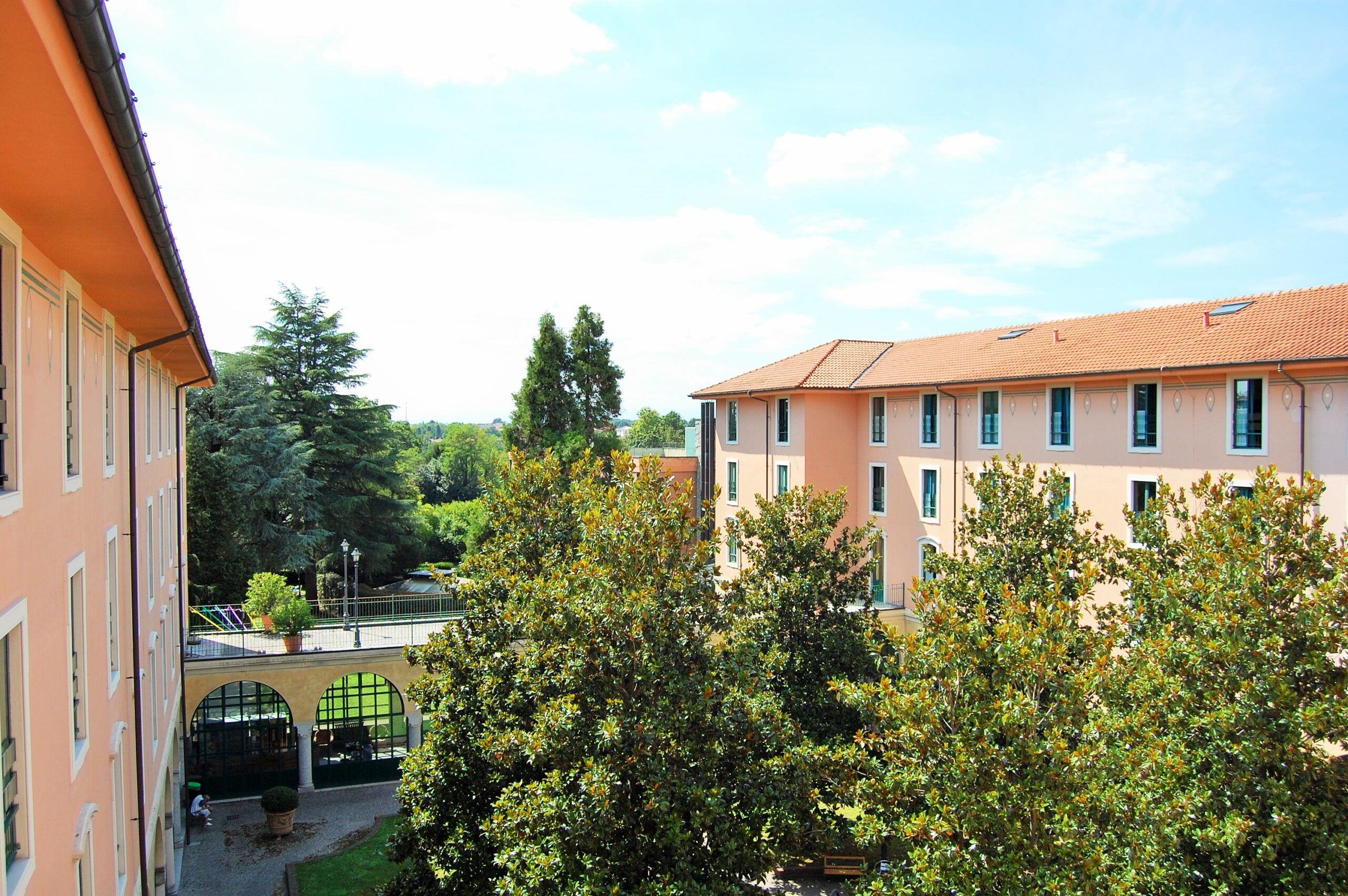 Esternamente a questo, ma ad esso collegato si è provveduto alla costruzione di un interno nuovo corpo destinato ad ospiti affetti dalla patologia Alzheimer o da altre patologie psichiatriche. Per la patologia Alzheimer si è creato in prossimità all’edificio un giardino dedicato con percorsi ed essenze espressamente rivolte all’assistenza di tali ospiti. Per quanto riguarda gli spazi aperti, il progetto ha previsto la riqualificazione del parco e la realizzazione di un portico a chiusura del chiostro centrale quadrato, creando un percorso coperto in grado di dare continuità all’intera struttura.